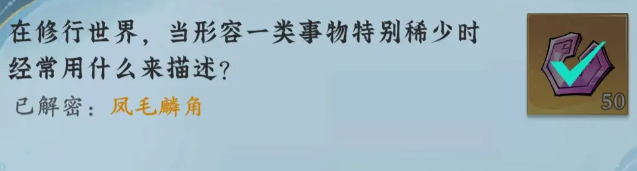 7、在修行世界,当形容一类事物特别稀少时经常用什么来描述?凤毛麟角