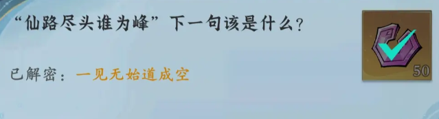 8、"仙路尽头谁为峰"下一句该是什么?一见无始道成空