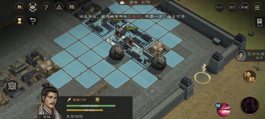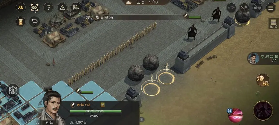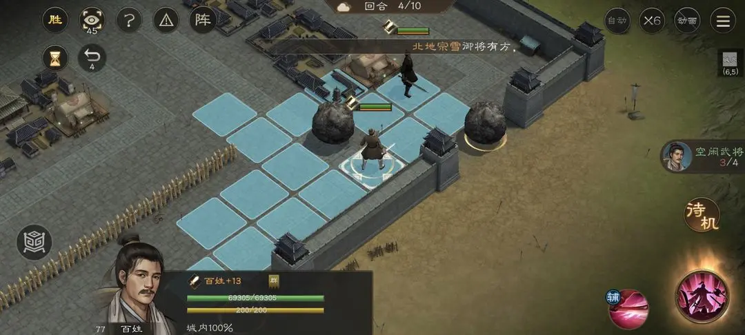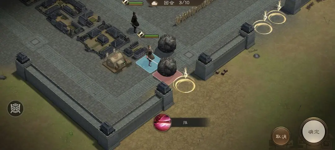 新三国志曹操传游历事件中的修缮城墙和推石头差不多,一共4个百姓,小技能推动一格,大技能推动3格。算好行动距离,不要浪费回合数就可以简单过关了。