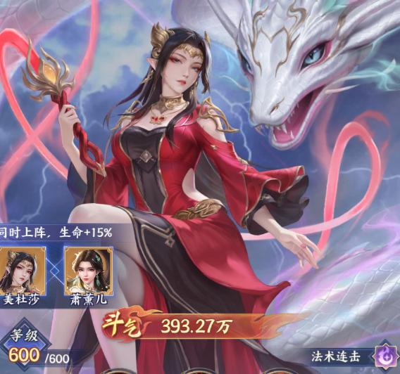 美杜莎为法系输出代表之一,普攻自带高概率追加效果;技能攻击一纵排敌人,若达成击杀则额外获得一次技能释放机会(每回合限1次)。升阶后解锁多重协同特性:队友普攻时美杜莎有概率追击普攻;提升全体角色攻击力,对水系角色加成翻倍;每3次普攻后,下一次追击普攻升级为追击技能;每次追击触发均可获得增伤效果。与萧薰儿搭配尤为契合——后者专注群体AOE与怒气回复,并为自身及攻击最高队友提供攻击力与护盾加成;二者同场可激活血量加成羁绊,实现输出与生存的双重保障。