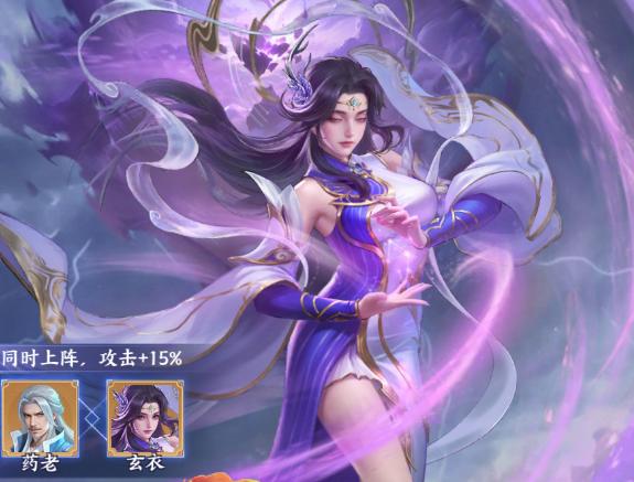 小医仙是群疗增益型辅助的典型代表:普攻攻击敌方一纵排,并为己方血量最低单位恢复生命,治疗量等同于本次普攻伤害;技能为全体攻击并恢复全体队友生命,同时提升全队15%攻击力。升阶后逐步解锁关键功能:治疗目标可获得怒气回复;技能附带暴击增益;技能有概率再次释放。玄衣则侧重持续生存保障,技能具备群体治疗与每回合持续回血效果;天赋含急救治疗机制;粉财壹星后解锁阵亡即刻复活效果,对主C形成强力容错保护。