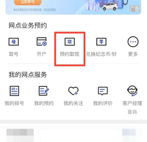第三步:最后在网点服务页面点击【预约取现】即可。