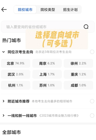 第四步:选择意向就读城市,支持多选设置。