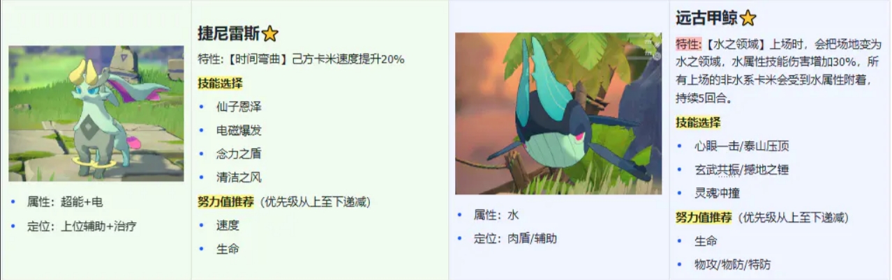 首发西尔维文替换远古甲鲸(或者反过来)可以让两只卡米的特性同时生效,让队友卡米的水属性技能吃到两次增伤。