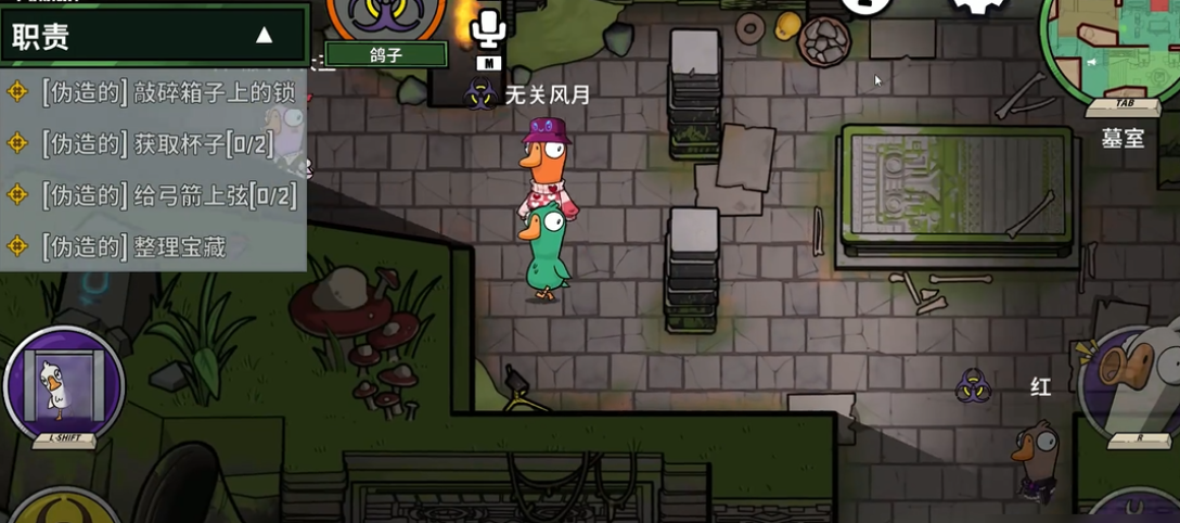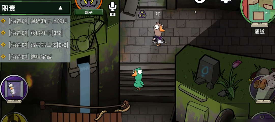 鸽子属于中立阵营,其核心获胜条件是在一个回合内感染所有存活的玩家。这里的一个回合指的是从游戏开始或会议结束到下一次会议被召集之前的这段时间,你必须在此期间用技能悄悄标记场上每一个还活着的玩家,一旦成功就会立即宣告胜利。你的个人任务是虚假的,无需完成。需如果游戏进入了会议阶段,那么你此前的所有感染进度都会被清零,会议结束后你必须从头开始感染所有幸存者。