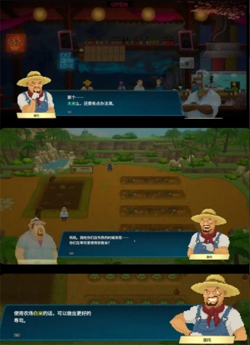 随着主线剧情的推动,会有一名VIP客人(没错,就是那位拍摄《机器人武士》的导演)来到班乔寿司店,他会抱怨这里的安南米不好吃,于是奥托便会给我们一个可以种植白米的小菜园