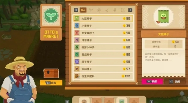 商店总共会解锁8种种子,推荐前期优先种小麦和大蒜,后期可以再补着种些黄瓜和大豆,用以咖喱派对和黄瓜派对