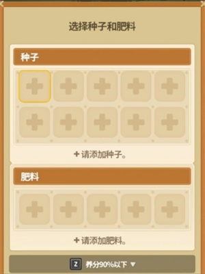 右侧区域则为田地区域,需要养分,手动播种,且日常浇水,对应种子可种植出对应作物