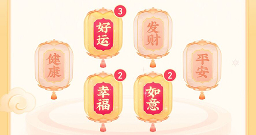 祈福灯笼共有“健康、好运、平安、发财、幸福及如意”六大新年愿望,集齐一套祈福灯笼可获得祈福红包的开奖机会