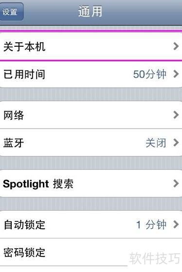 在通用设置中找到并点击"关于本机"选项,这里包含了设备的所有基础信息。