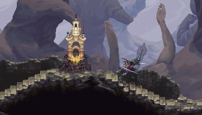 2、先往地图的右边走经过一座小塔。