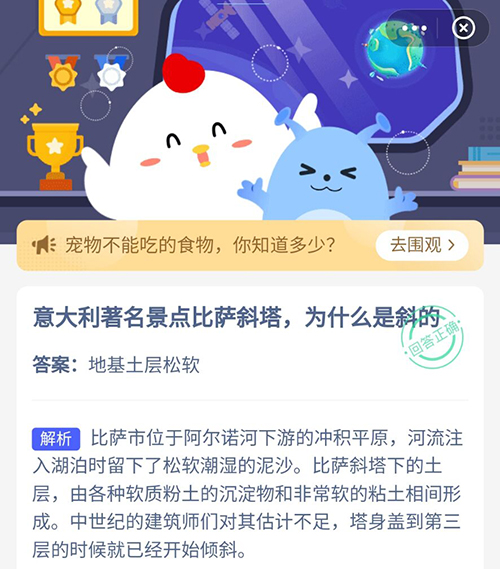 意大利著名景点比萨斜塔为什么是斜的 支付宝蚂蚁庄园7月16日答案