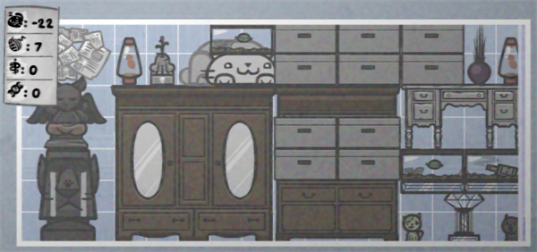 尽可能拉低舒适度,这里的小猫也因为极低的舒适度不怎么会生育,打架产生死猫残猫都可以去送人,也是僵尸和Jack的进货口,一般都丢些不要的后代和野猫进去,如果偶尔有猫霸出来,高属性可以带去冒险,不失为是一个好选择。另外食物箱也都可以塞这里,毕竟属性不怎么苛求,如果想拉低卫生可以不铲屎。