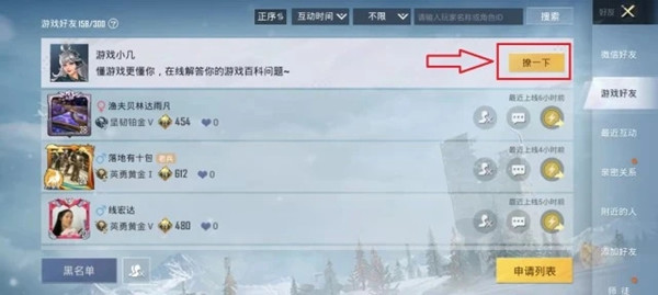 1、首先打开和平精英游戏,在好友栏里找到最上面的“游戏小几”。