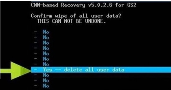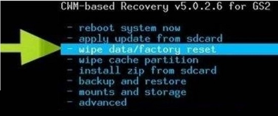 第二步,进入twrp,选择“wipe data/factory reset”进入。(音量键控制上下移动光标,电源键为确认)