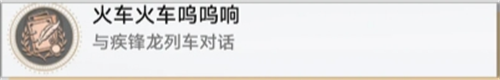 到二维市负1层-泊地站月台锚点附近这,等疾锋龙到站后跟它对话即达成【火车火车呜呜响】成就