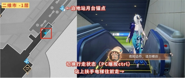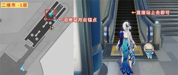 继续到二维市负1层-泊地站月台锚点附近这的扶手电梯,站上去即达成【请扶稳站好,不要看手机】成就