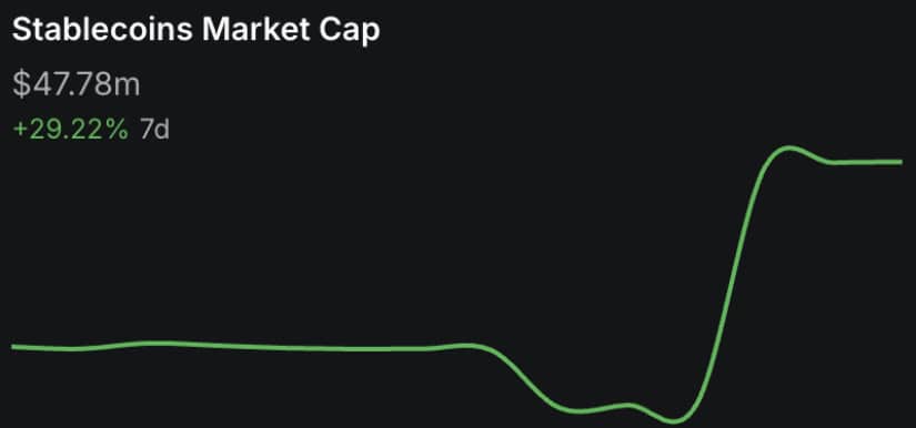 卡尔达诺稳定币市值周涨29%逼近5000万美元。数据来源:TapTools/X