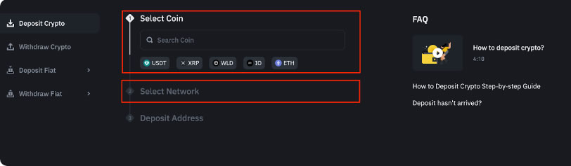 1. 选择"充值加密货币"功能进入操作页面