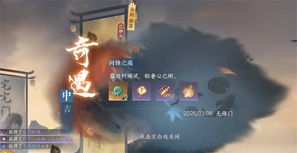 2、强化/打造/镶嵌等都可以触发奇遇【问锋之邀】(最好不要用一键操作,一个一个手点),运气好一下就触发了