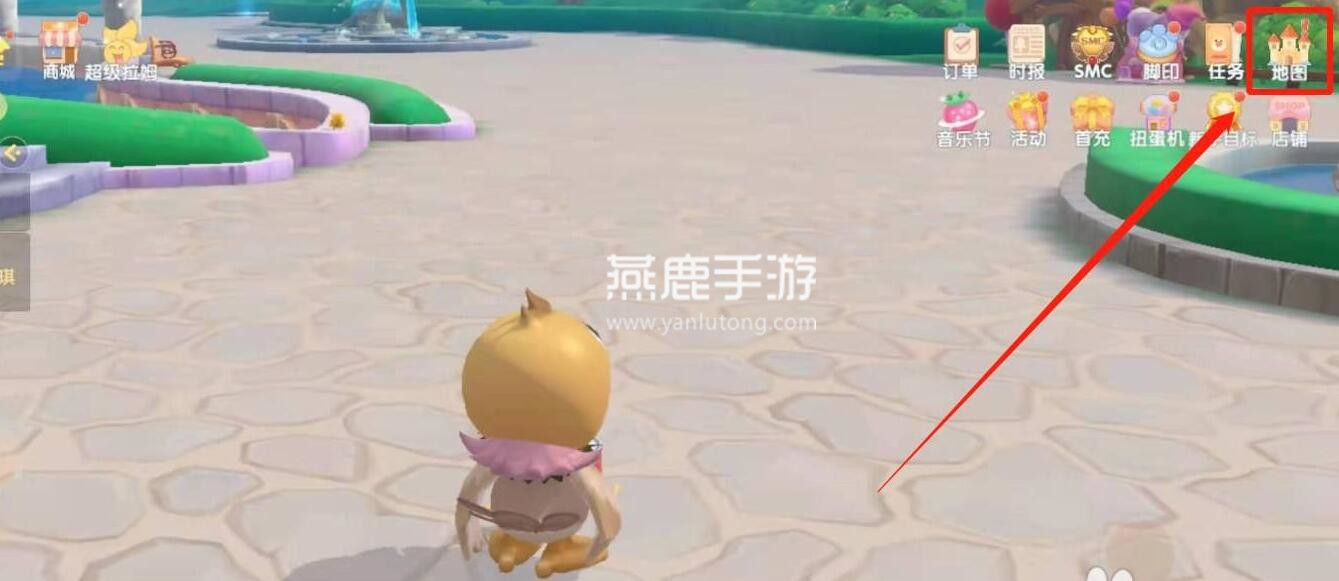 1、首先打开游戏,点击右上角地图打开;