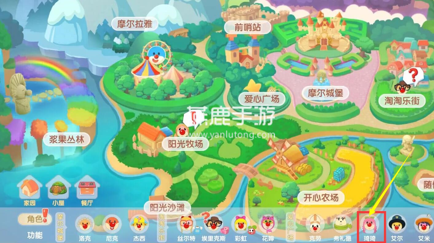 2、然后点击下方的琦琦,自用追踪去爱心街区寻找琦琦;