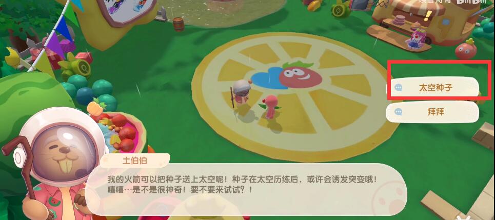 4、靠近和土地伯伯对话,点击太空种子,即可花费对应的豆子购买。