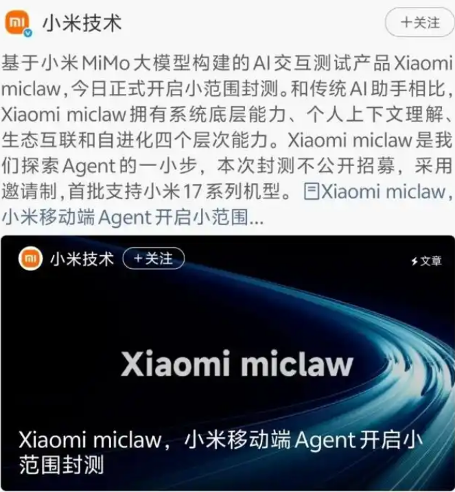 Xiaomi miclaw基于小米的MiMo大模型构建,是一款AI交互测试产品,而本次下载并非全都可以下载,而是封闭资格测试。封测采用邀请制来进行,那么Xiaomi miclaw封闭资格怎么申请?下面就可以为大家带来Xiaomi miclaw封闭资格申请方式。