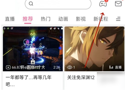 第一步需登录B站客户端,在首页右上角点击游戏中心图标进入专区。