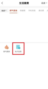 点击燃气电子发票进入云缴费页面后,在相关功能选项中找到并点击“燃气电子发票”。