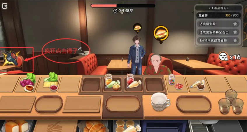 收益强化逻辑:娜娜莉的3级都市技能可显著提升锤子命中顾客后产生的单次售价;薄荷的都市技能则确保顾客离店后仍会结算消费金额。二者叠加,使“砸锤”行为不仅维持连击,更成为高单价、可持续的收入来源。实测数据显示,该组合下的单位时间收益稳定高于纯手动上菜模式,且波动幅度更小,长期运行更具经济性。