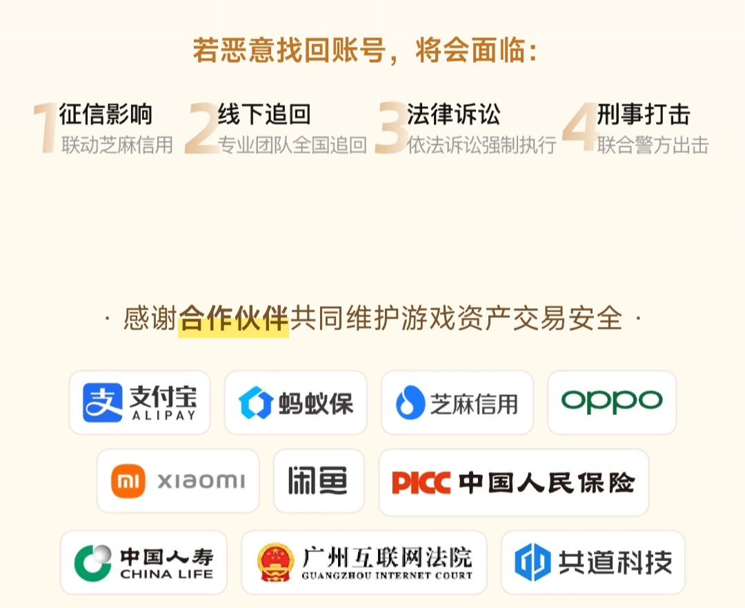 健康的账号交易生态,依赖平台对违规行为的零容忍态度。针对恶意找回等失信操作,构建了涵盖信用惩戒、线下协查及司法联动的三级响应机制,有效遏制风险行为,持续净化交易环境。