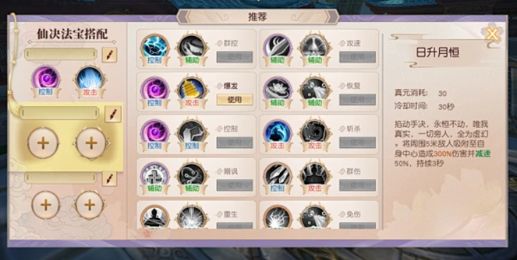 法宝系统是影响战力的关键要素,合理搭配不同属性法宝可触发额外增益效果。配合多样化的心法系统,玩家能针对不同战斗场景制定专属策略。