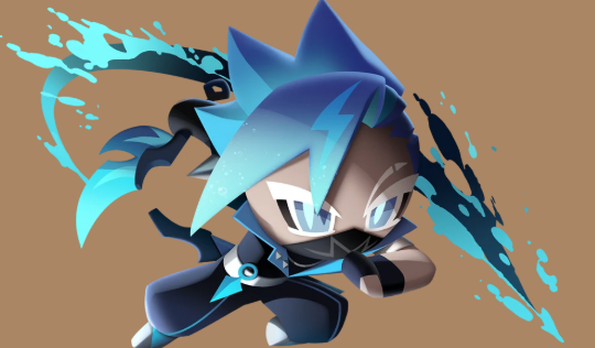 音速能量饮饼干——水属性砍击型助攻,全游戏中唯一具备位移+印记双机制的助攻单位。被动「靛黑刀刃」提供「音符」叠加系统:每次普攻或冲锋命中可积累1层,满5层后下一次释放特殊技能或绝招将激活「摇滚精神」,提升最终伤害30%。特殊技能「月牙掠影」分两段:首段投掷暗黑短刀标记目标,随后可点击指定敌人瞬移至其身侧发动范围劈砍,并施加「风暴印记」;长按则触发背刺判定,移至目标正后方,提升命中稳定性。绝招「无敌音速斩」为三段式连击:前段短刀快斩(3次)、中段腾空回旋、末段长刀突进收尾,最后一击必附「风暴印记」,印记可被队友技能触发协同效果,强化队伍连携体系。