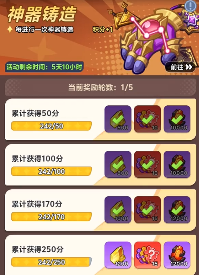 资源规划能力直接影响养成效率。建议玩家优先完成每日活跃任务与周期性活动,确保铸造代币、培养材料、经验精华三类资源储备充足后再启动批量铸造。获得新神器后,应集中资源优先完成主力输出位神器的等级突破与前五阶升星,快速兑现战力提升;次要位置神器可暂缓投入,保留材料应对版本迭代带来的职业适配调整或新神器图鉴拓展需求,保障中长期战力结构稳定性。