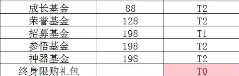 完成基础资源储备后,应转向长效成长型投入。终身卡定价128元,归类为T2,虽非首推,但长期日均收益显著,建议玩家度过新手适应期、确认长期留存意愿后再购入,以摊薄单日成本;各类基金中,“成长基金”“荣誉基金”等定价区间为88元至198元,回本周期较长但总返利比例优异,适合有规划意识的用户分阶段配置;其中198元招募基金被列为T1级,专为扩充英雄池设计,对阵容构建具有不可替代性,战略价值高于其他功能性基金。