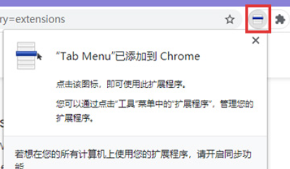6、当右上角提示成功添加之后,点击扩展程序图标就可以展开所有标签页了。