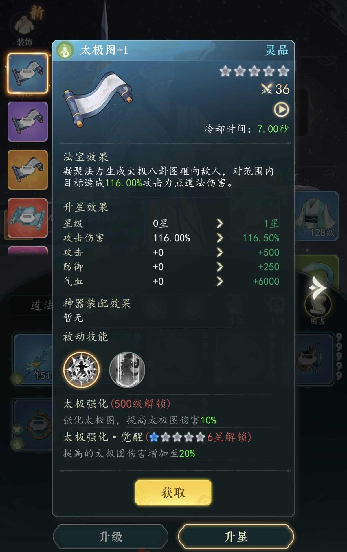 纯道法配置推荐:神砂葫、太极图、雷鸣珠、七禽扇、降魔扇、混元伞。该组合整体输出节奏偏稳健,爆发力有限但续航能力突出。其中,七禽扇可召唤多把灵扇环绕施法者,对周身目标施加道法伤害,并在命中时概率恢复真气;太极图释放后砸向敌方区域,造成范围道法伤害,同时立即返还真气;神砂葫持续发射神砂珠,具备高频率道法伤害,释放期间亦有真气获取概率;雷鸣珠以自身为圆心引动神雷,轰击周围单位并即时回复真气;降魔扇向前回旋打击,触发多次伤害,当真气值处于高位时,还将激活额外伤害加成效果。