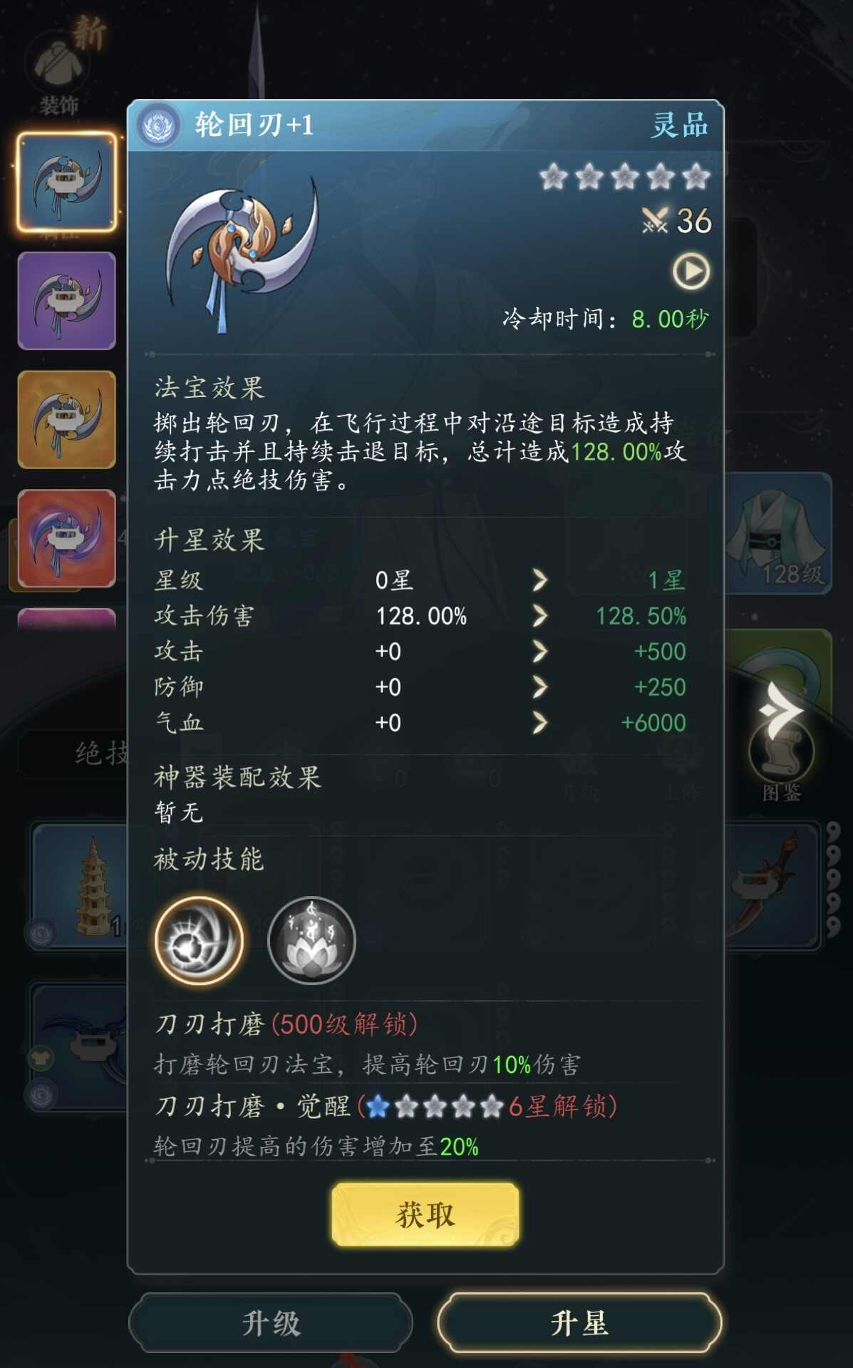 若侧重战场机动性与强控压制,可尝试进阶混搭方案:斩仙刀、轮回刃、诛仙剑、天罡剑、浑元伞、降魔扇。此套配置弱化了部分真气自循环效率,但显著强化了突进、击退与瞬时压制能力。诛仙剑与天罡剑作为飞剑类法宝,提供精准点杀与群体击退效果;斩仙刀除造成道法伤害外,还可降低角色所受伤害;轮回刃在飞行路径上持续造成伤害并强制击退目标,大幅增强团战搅局与战术拉扯能力。