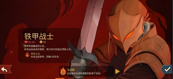 铁甲战士定位为高容错生存型职业,起始生命值为80点,在前期探索中具备较强抗压能力,适合初次接触系列的新手玩家。其专属初始遗物“燃烧之血”可在每场战斗结束后恢复6点生命值,有效强化续航节奏。