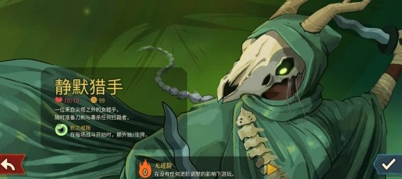 静默猎手强调高速响应与爆发输出,依托灵活的抽牌机制与高频率闪避类卡牌协同,可在单局内快速建立伤害优势。其初始遗物专为卡组循环效率优化,为速攻流打法提供稳定支撑。
