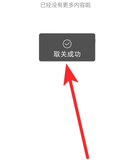 步骤三:系统弹出【取关成功】的提示即可。
