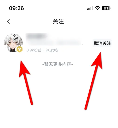 点击目标用户头像后方的【取消关注】选项。