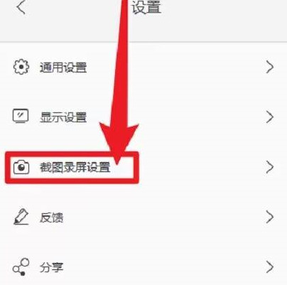 2、在打开的窗口界面中,点击其中的"截图录屏设置"选项。