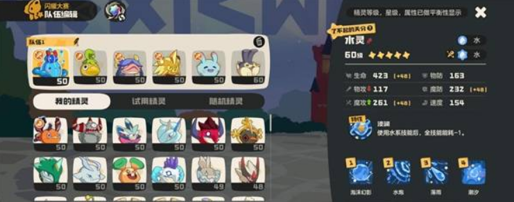 鲶鱼/水灵首发,不断换对应精灵输出。