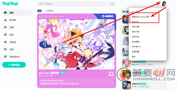 1、首先我们需要先进入到taptap官方中,我们在这里点击右上角的【头像】;