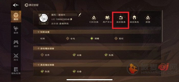 3、点击自己个人信息旁边的返回角色,这个操作可以在用一个账号下切换角色。