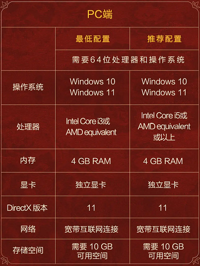 PC端下载完整客户端,请至少预留10GB以上存储空间;