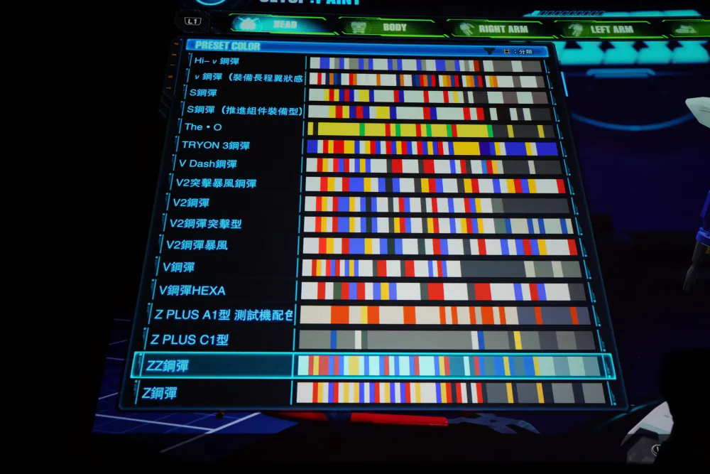 接着两位制作人现场挑战组装机体,每部分零件都透过现场徵询的方式让玩家从自己喜爱的钢弹系列作品机体中挑选,最终组出了由「逆 A 钢弹」头部、「GN-X」胸部、「剎帝利」左臂、「沙萨比」右臂、「达里巴尔迪」足部所构成的机体,并搭配便利的「预置配色」功能提供的「百式」配色,构成了这次上市纪念活动专属的「上市纪念钢弹」。