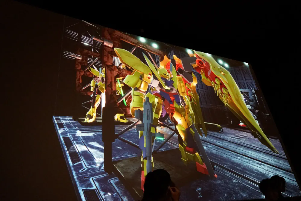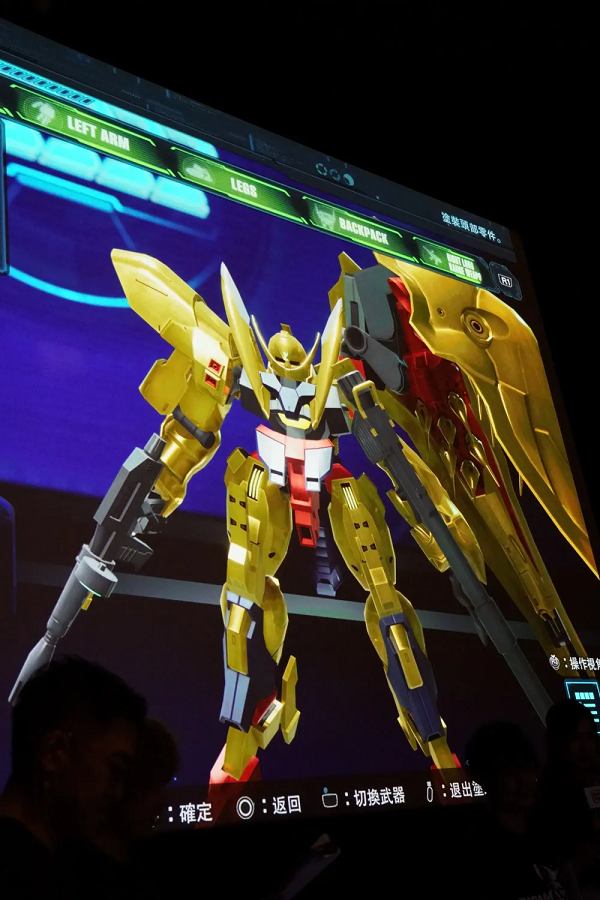 在介绍完游戏特色之后,现场特别展示了两位来宾 GamerBee 与 SHINN 专门为这次活动自己打造的钢弹模型。其中 GamerBee 以他小时候很喜欢的「钢弹 F91」为基础,打造了一台以 “蜜蜂” 的黄黑双色为概念的机体「钢弹 F91Bee」。SHINN 则是打造了一台结合「风云再起」马形足部、「兹卡克」多节手部与《钢弹创斗者 TRY》女主角星野文奈头部的奇葩机体「兽人文奈」,趣味性十足。SHINN 透露,因为担心这么奇葩的机体设计官方不给用,所以还准备了比较正常的机体,没想到居然通过了。